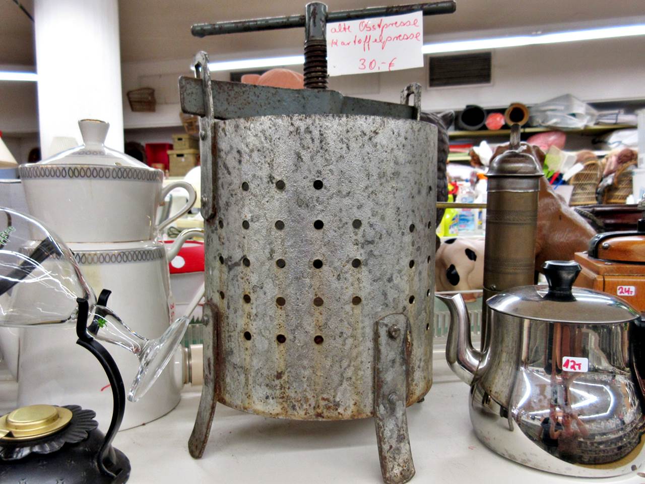 Dort gab es lauter lustige, interessante und kuriose Dinge, die irgendwann im Laufe der Zeit in Vergessenheit geraten sind. Aber nicht bei uns. Den Heringstopf aus Steingut zum Beispiel kennt jeder. Oder die alte Küchenwaage, die auch gerne mal zum Wiegen von Babys verwendet wurde. Oder die Kaffeemühle in allen möglichen Formen und Varianten, die von Hand betrieben wurde. Selbst alte Fußwärmer aus Metall und alte Obst- oder Kartoffelpressen warten auf euch. All diese Helferlein und natürlich noch viel mehr gibt es bei uns im Laden, die Bilder zeigen nur eine kleine Auswahl. Ob zum Gebrauch oder als tolles Deko-Objekt, in allem steckt eine lebendige Geschichte unserer Eltern und Großeltern.