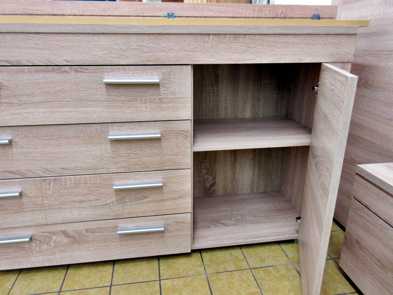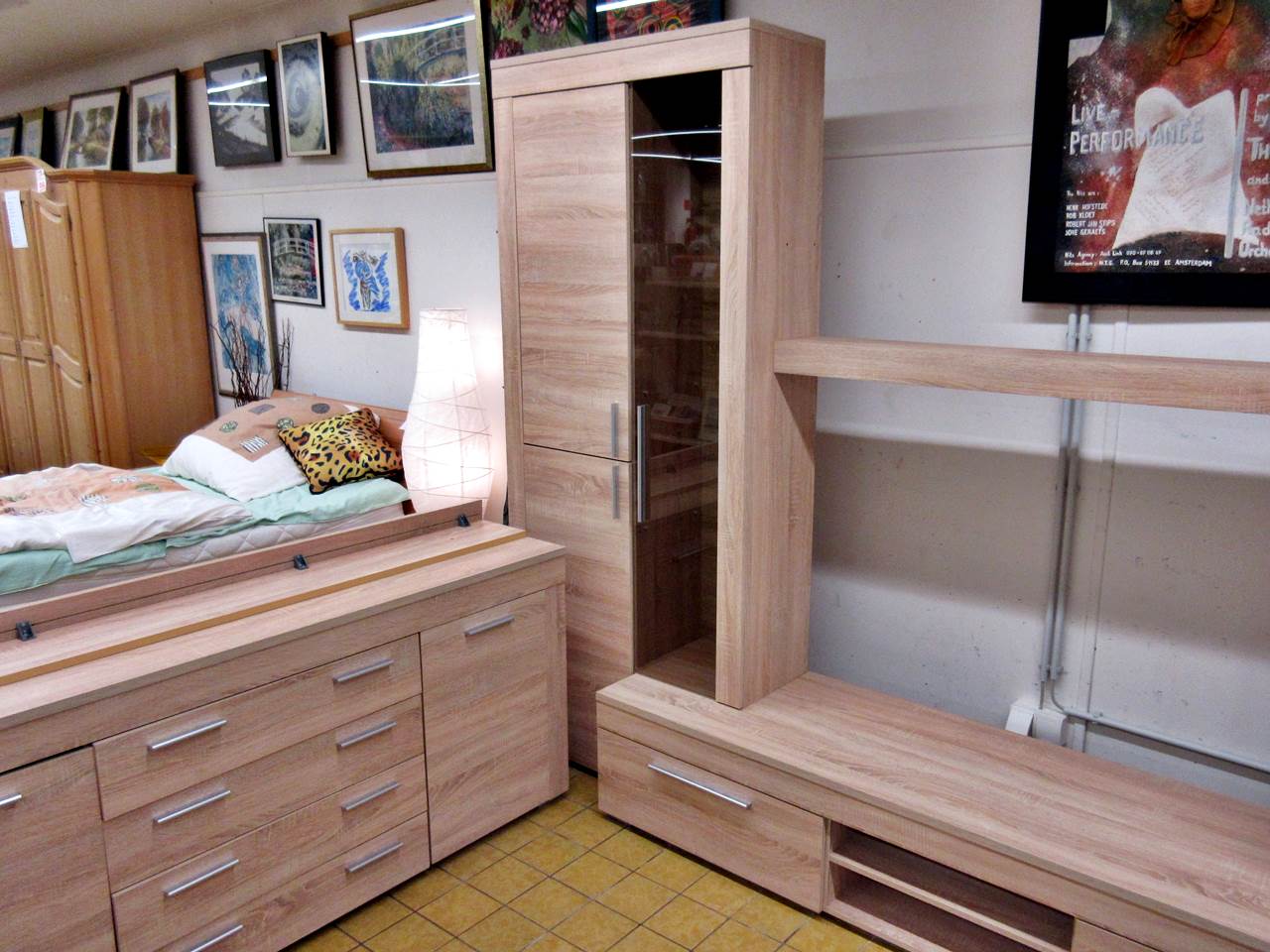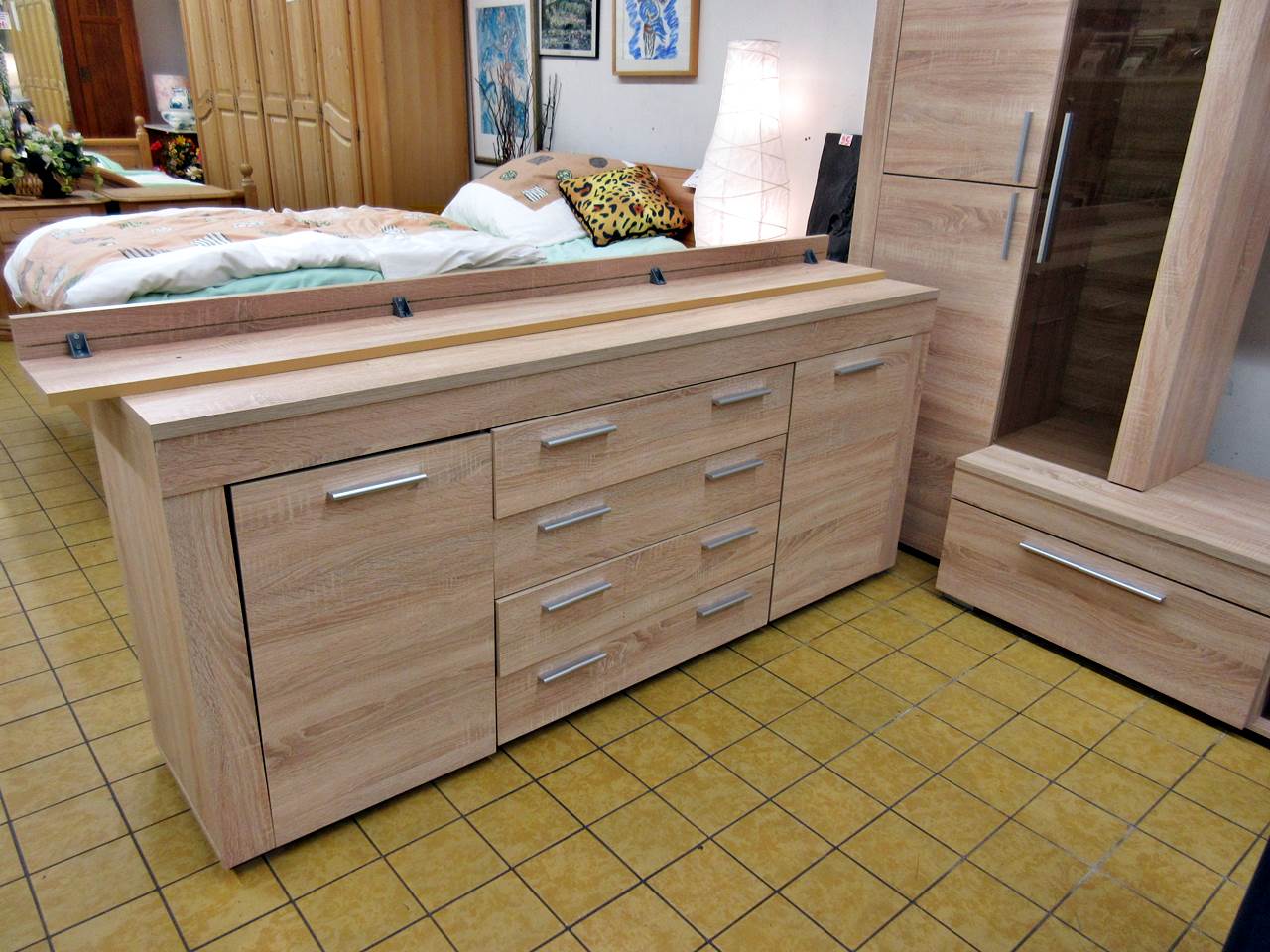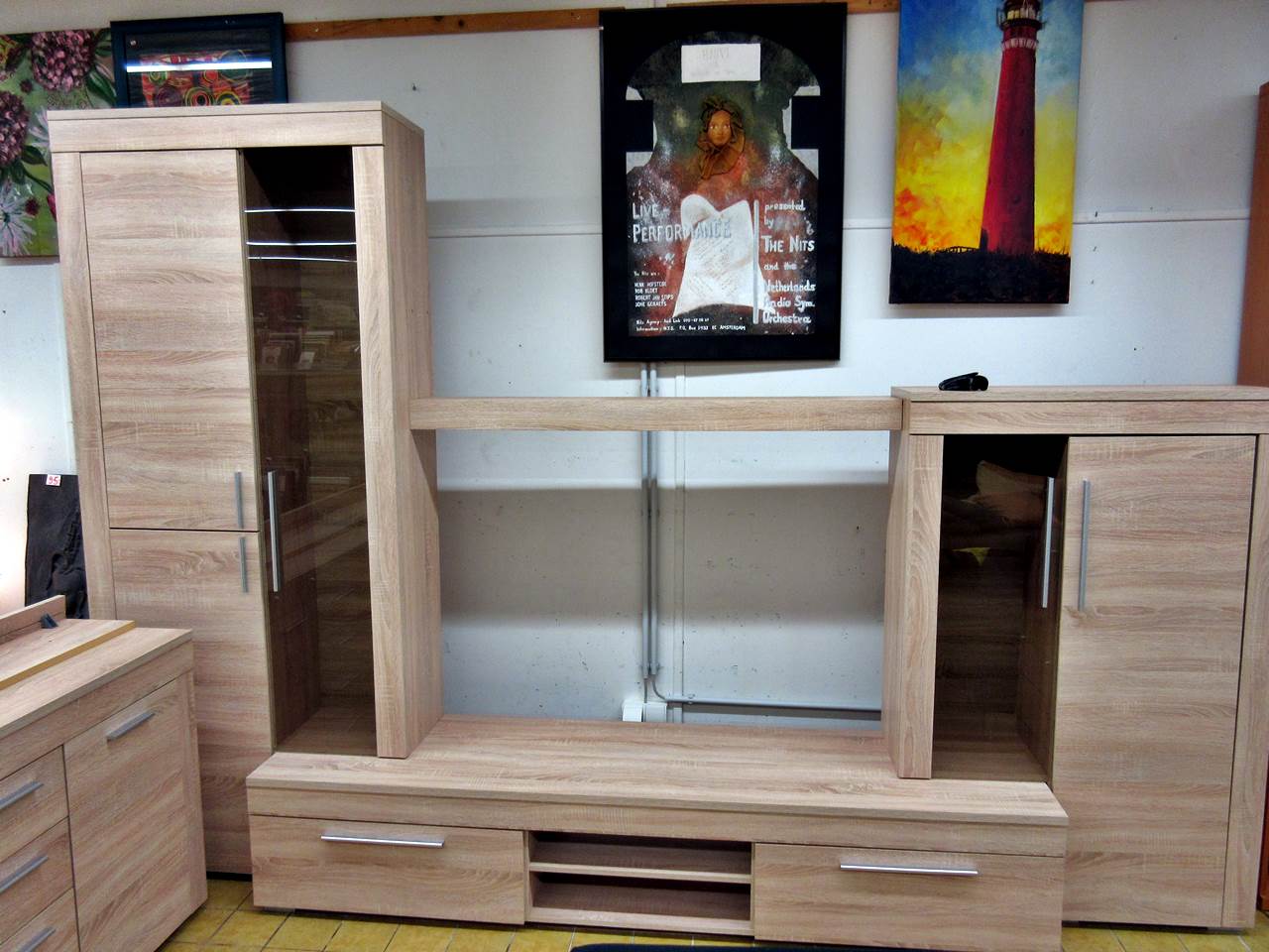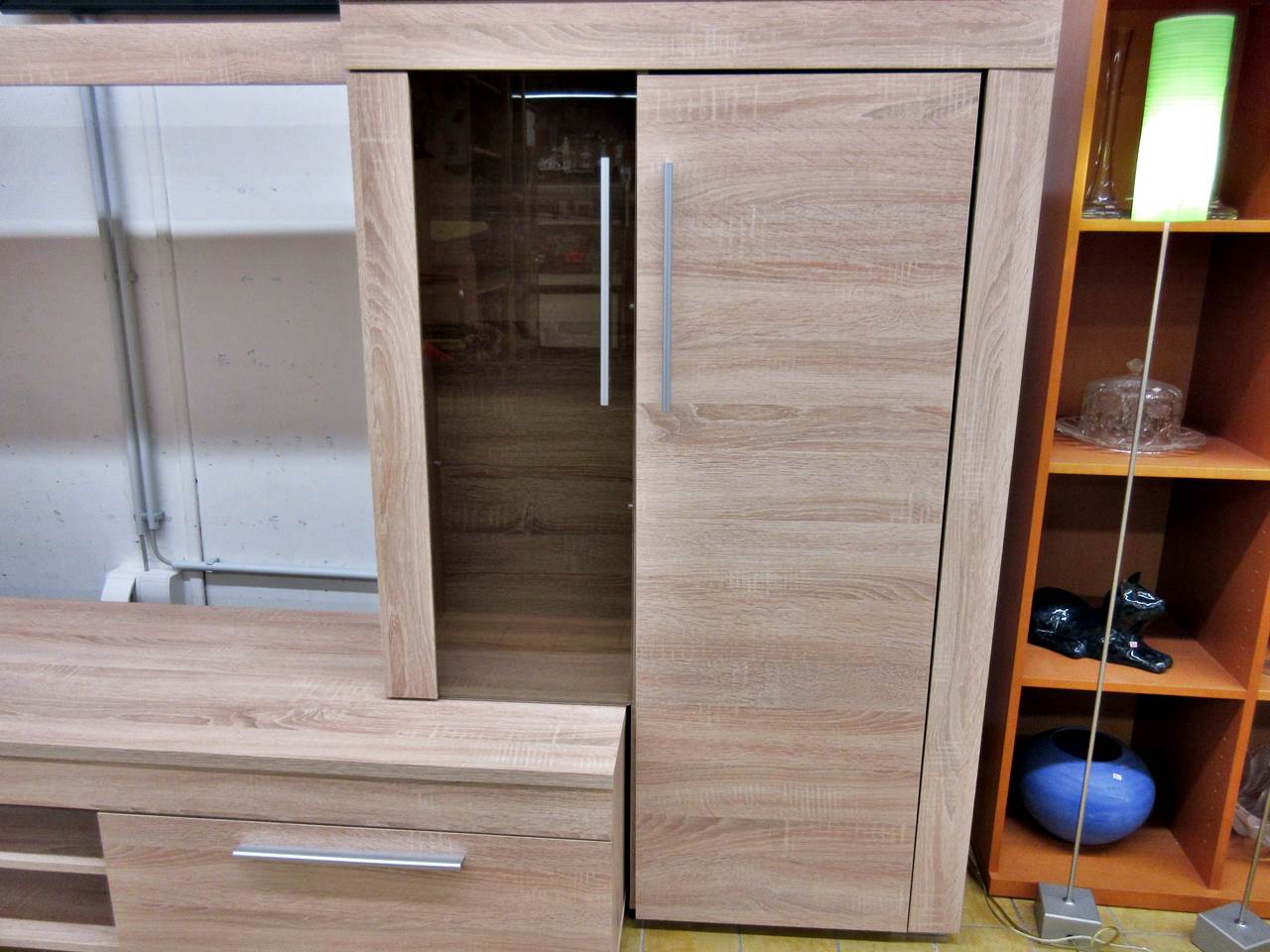 Wie richtet ihr euch ein, modern oder alt? Oder sogar beides kombiniert? Bei uns kein Problem. Für´s moderne Wohnzimmer haben wir aktuell eine tolle Wohnwand mit Sideboard da. Die Wand ist so aufgebaut, dass auch ein großer Flachbildschirm seinen Platz findet. Rechts und links gibt es eine Vitrine und unten mehrere Staufächer. Ergänzend hierzu haben wir ein passendes Sideboard, das nochmal viel Stauraum bietet. Ihr könnt beides zusammen oder auch getrennt bekommen.