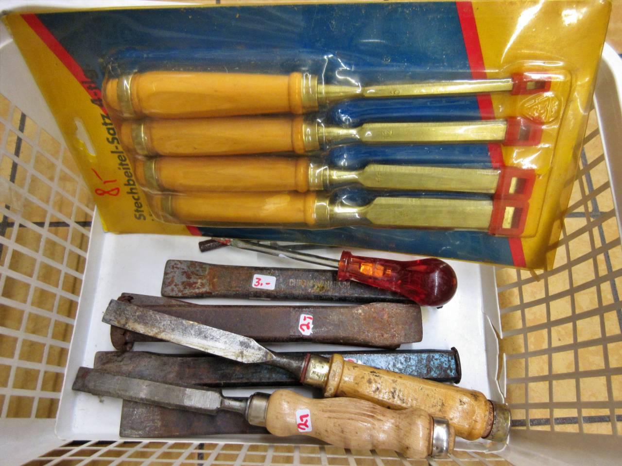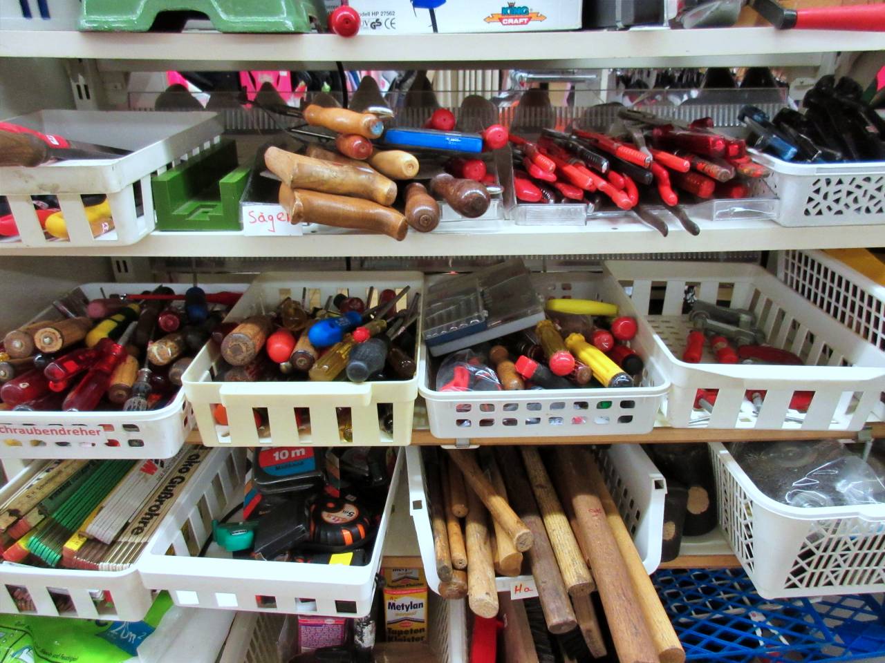 Wir haben mal unser Lager auf den Kopf gestellt und können euch stolz ein reichhaltiges Angebot an Werkzeugen präsentieren. Schraubendreher, Schraubenschlüssel, Hämmer, Schraubzwingen, Sägen, Hobel, Bohrer, Zangen, Spachtel, Stechbeitel, Pinsel und vieles mehr warten auf euch. Werkzeugkästen und Werkzeugboxen für mehr Ordnung und Malerbedarf runden das Angebot ab. Solange der Vorrat reicht, sorgen wir regelmäßig für Nachschub. Falls etwas vergriffen ist, fragt einfach an der Kasse nach.